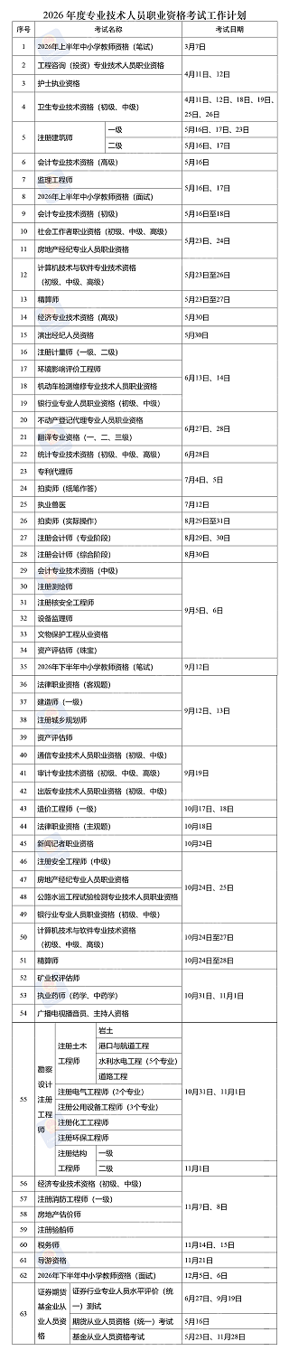 2026年度专业技术人员职业资格考试工作计划